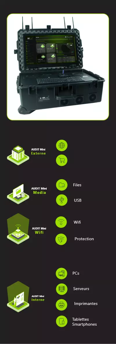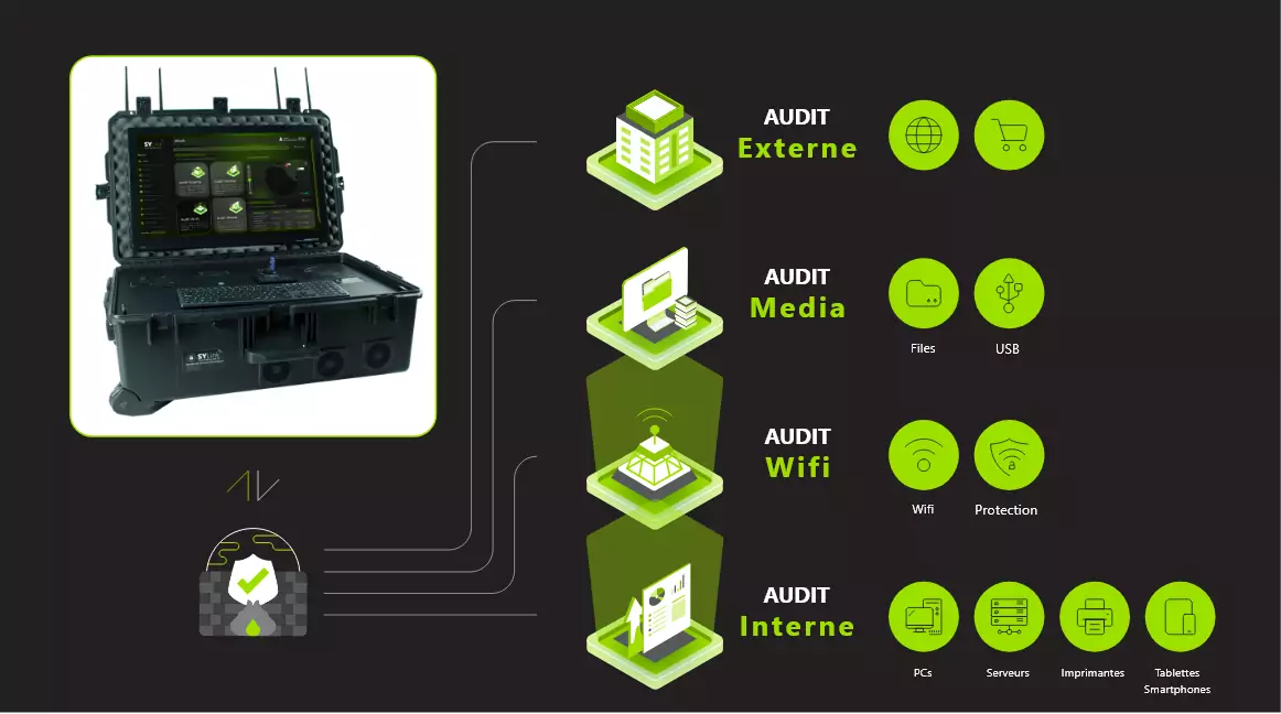 • Audit externe • Audit interne • Audit Wi-Fi • Audit média