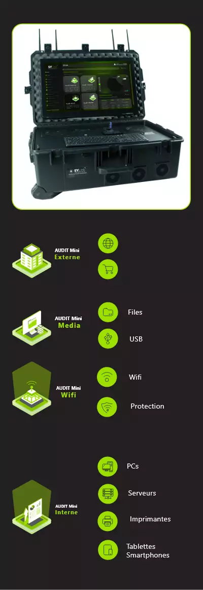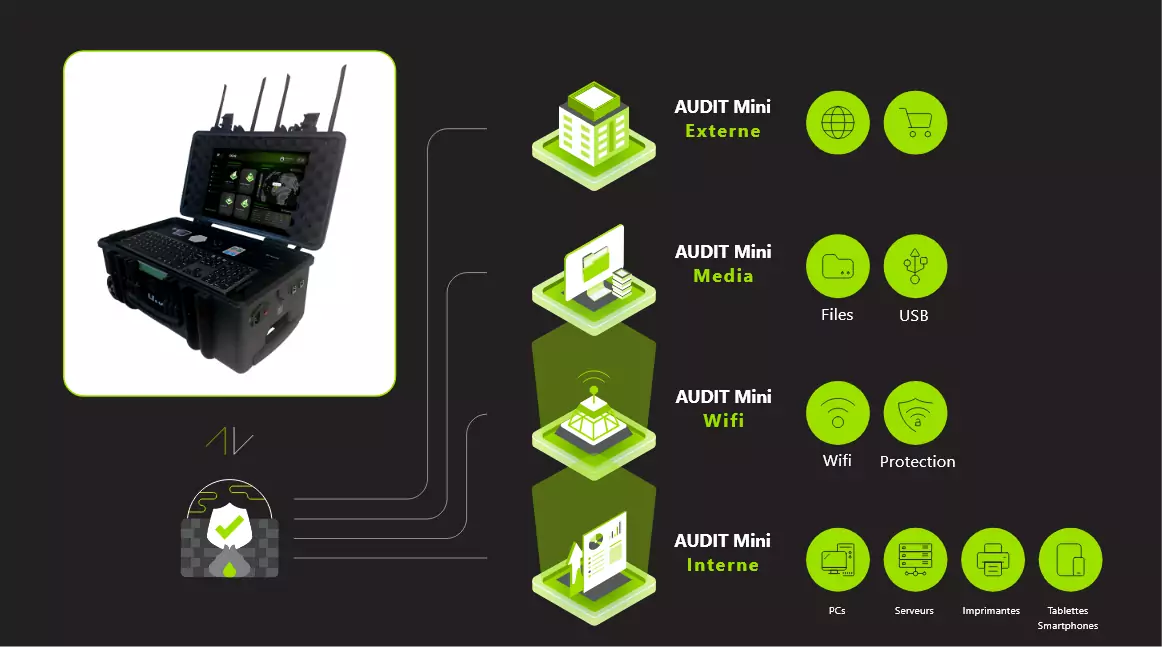 • Audit externe • Audit interne • Audit Wi-Fi • Audit média