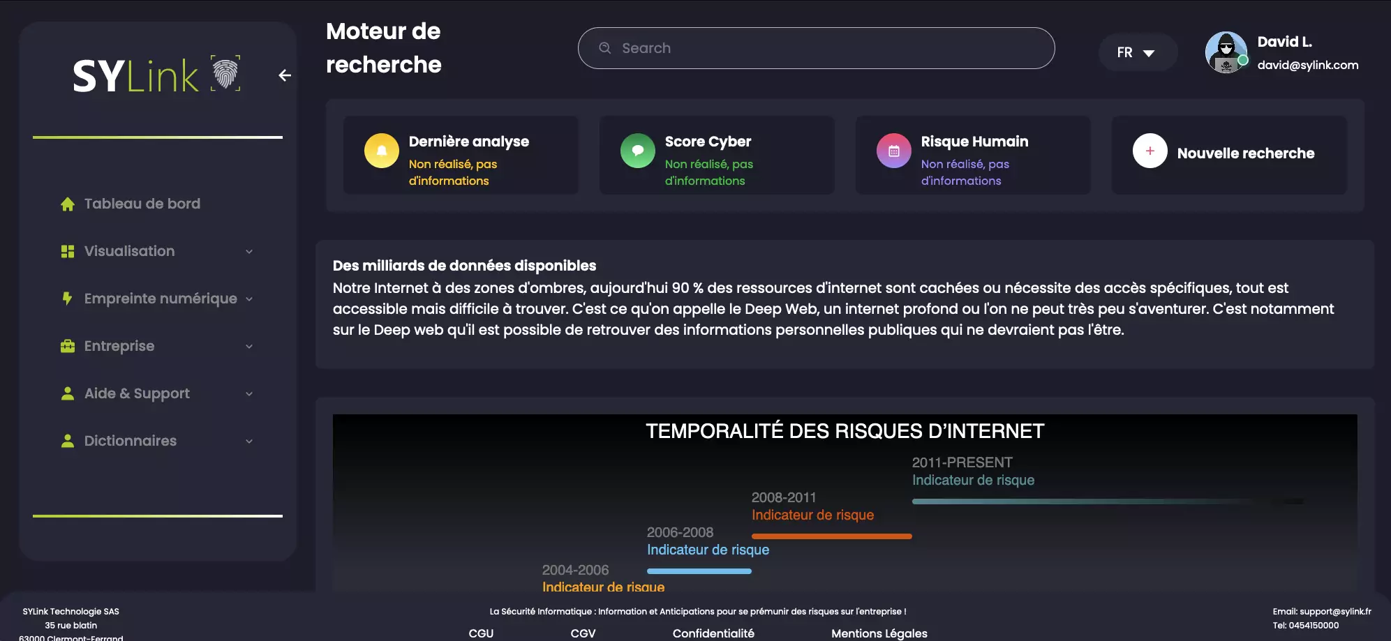 Le moteur de recherche SYLink Leaks est une solution d'OSINT / CIT automatisée (en français : renseignement d'origine sources ouvertes).