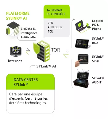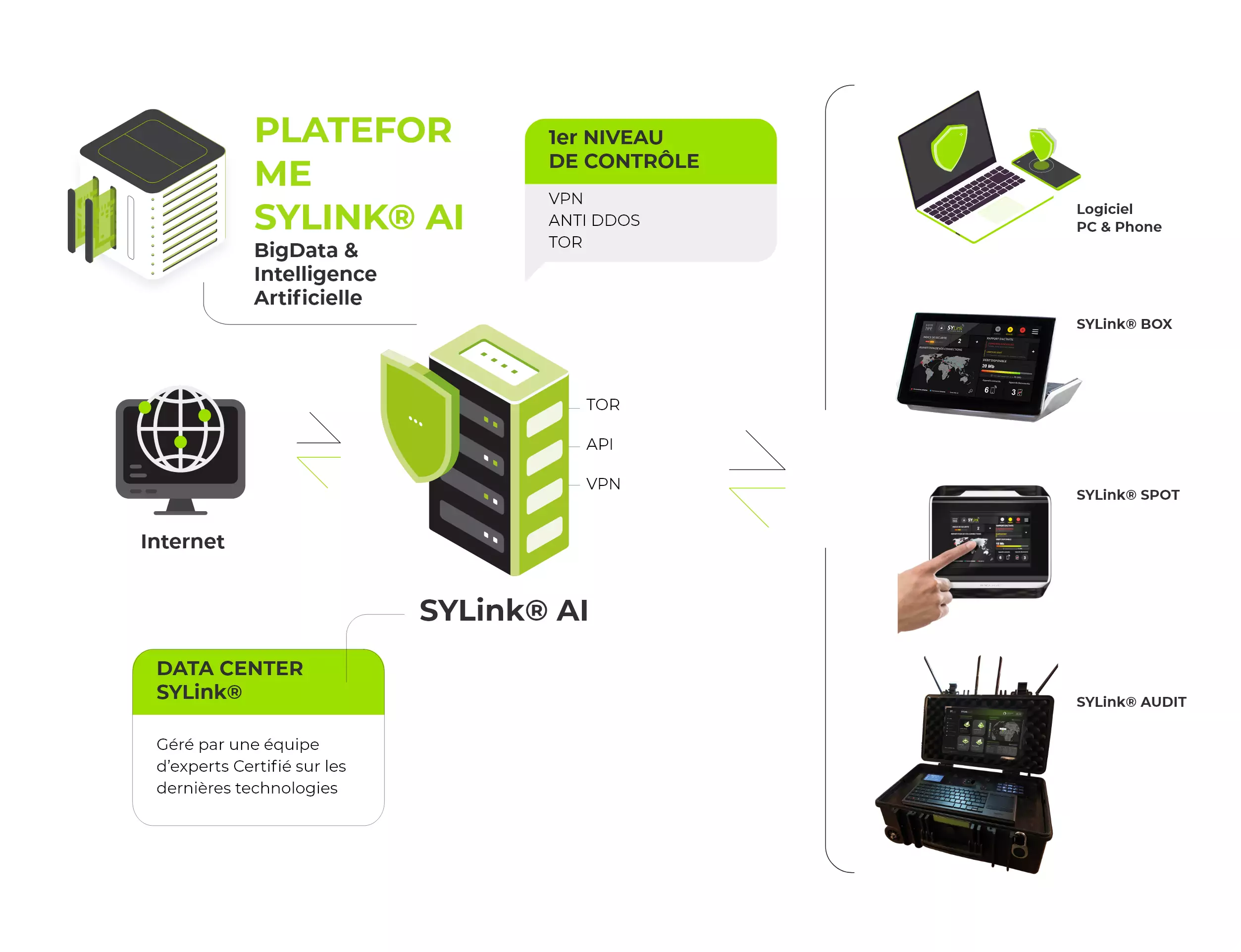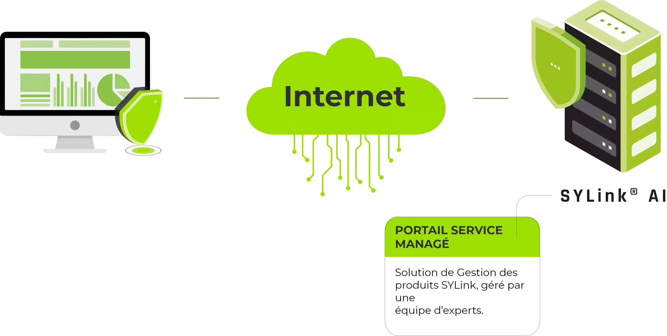 Naviguez dans une interface simple et intuitive. SYLink AI est le portail web unique pour gérer tous vos produits SYLINK : SYLINK BOX, SYLINK AUDIT, SYLINK VPN...