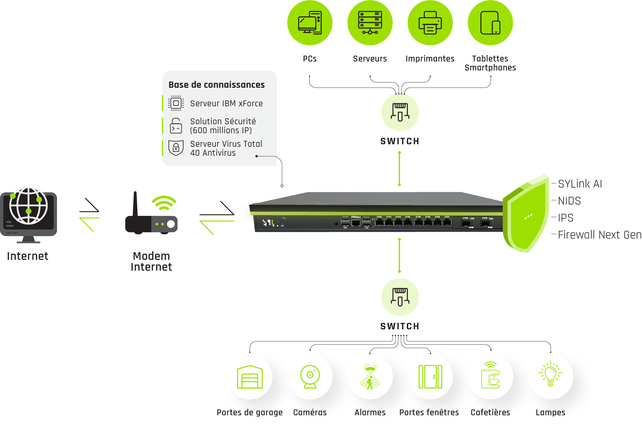 L'IA embarquée est basée sur un algorithme complexe d'apprentissage intelligent. SYLink® Pro apprend les habitudes de votre réseau afin d'offrir une protection maximale. Il collecte, analyse, détecte, bloque, et vous alerte en cas de menaces.