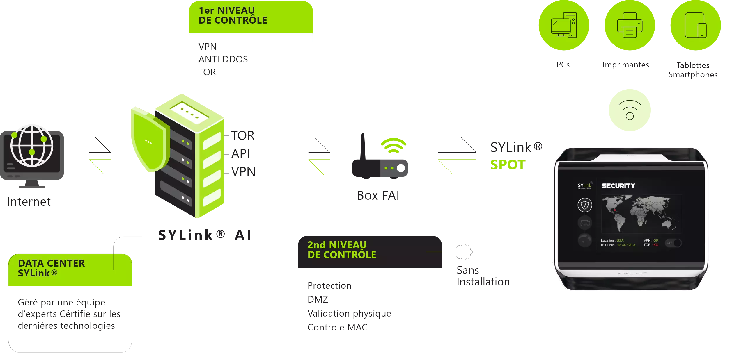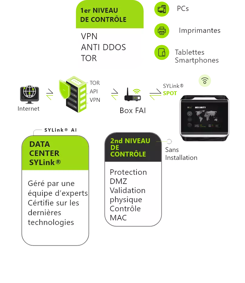 Connectez-vous sur n'importe quel réseau public en toute tranquillité, sécurisé par le SYLink® SPOT.
